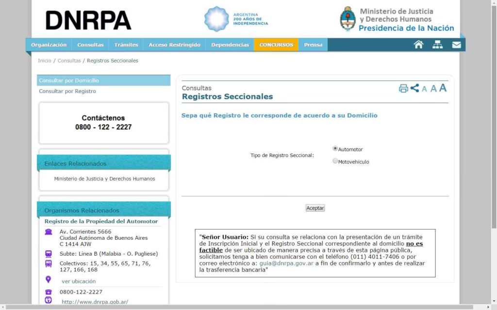 - Presentación de la Documentación: Con el Formulario 08 completo y certificado, el certificado de verificación, los informes, los comprobantes de pago y la documentación de identidad de las partes (DNI), se presenta todo en el Registro Seccional del Automotor que corresponde al domicilio del comprador o a la radicación del vehículo, según el caso. La presentación puede realizarse de forma presencial solicitando un turno, o en algunos casos, gran parte del trámite puede iniciarse de forma virtual a través de la web de la DNRPA.